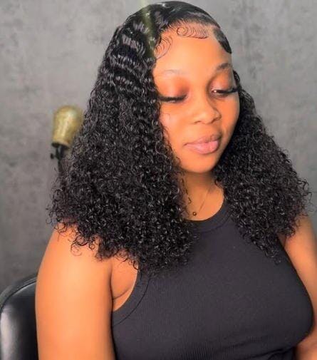 Bob Style Water Wave 13*4 Transaprent Frontal Lace Wig Natural Black #1B