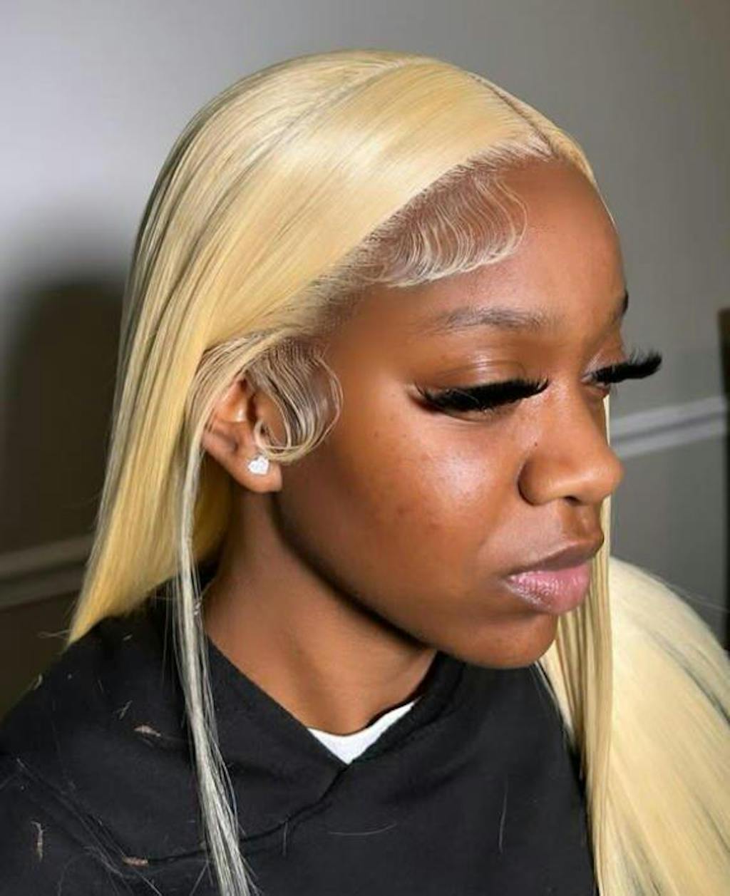 Straight 4x4 Closure transparent Lace Wig #613 Blonde Color Wig