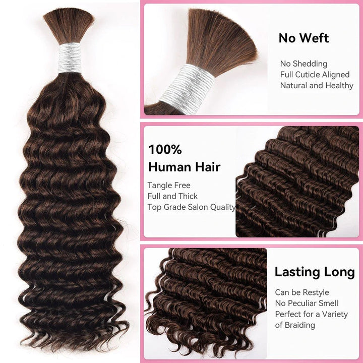 Deep Wave Bulk Human Hair Blonde #2 Braiding Hair (100 Grams)
