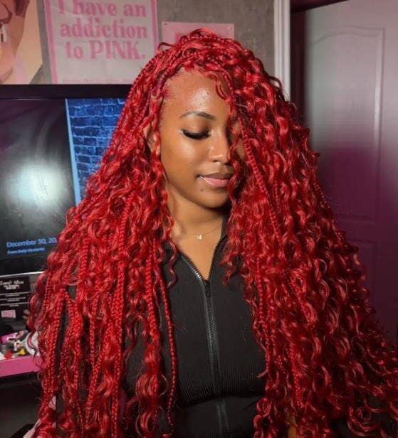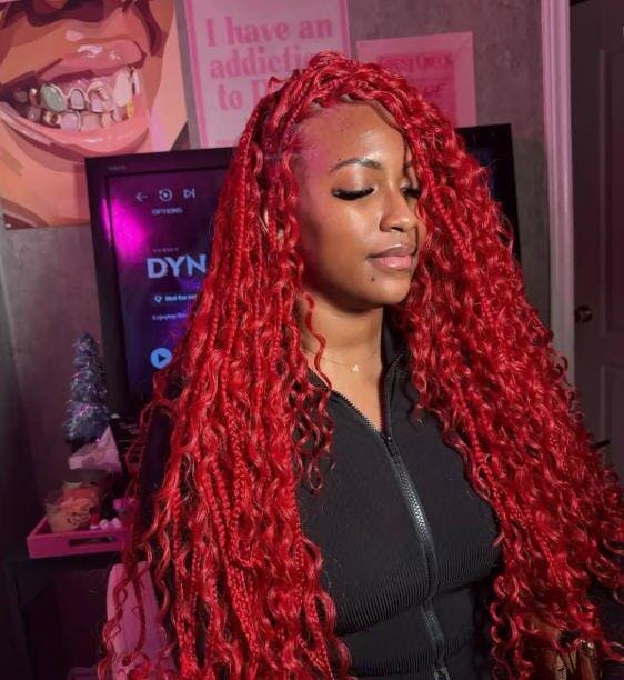 Deep Wave Bulk Human Hair #Red Braiding Hair (100 Grams)
