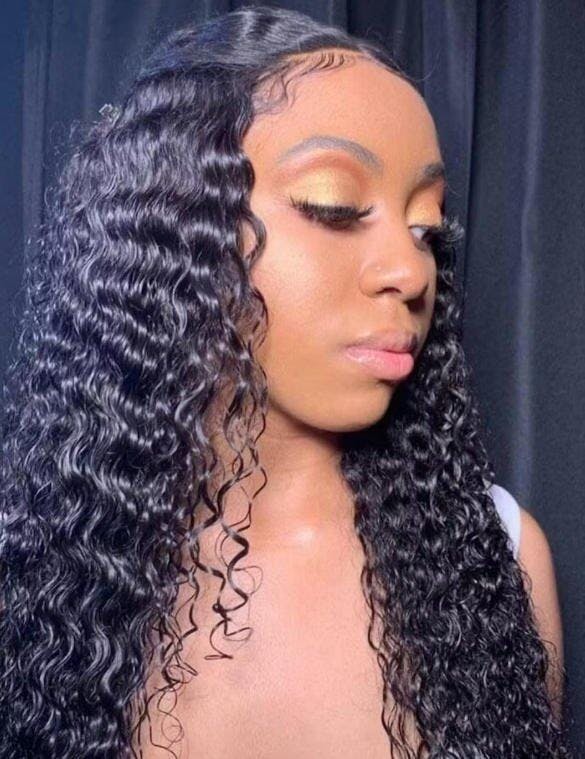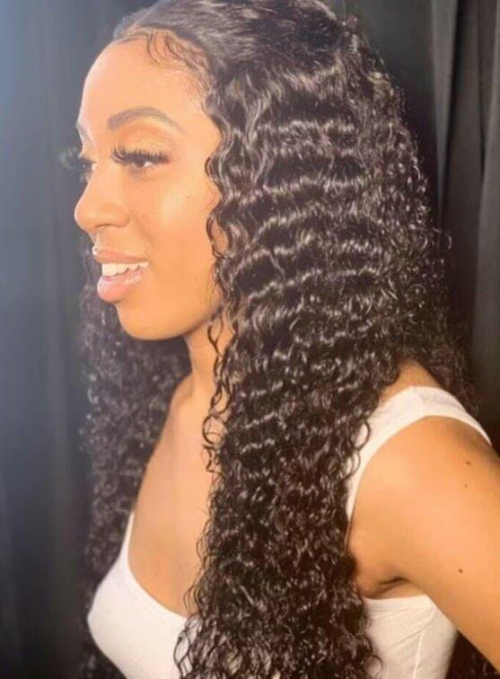 Free Shipping 3 Pcs 12A Bundles With One 4*4 Transparent Closure (Deep Curly) Virgin Human Hair Natural Black #1B Bundles With Closure Deal