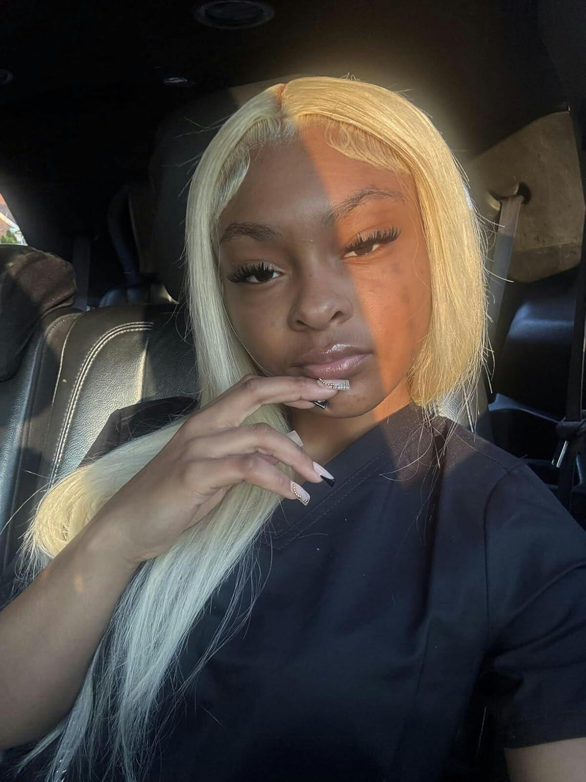 Straight 4x4 Closure transparent Lace Wig #613 Blonde Color Wig Free Shipping