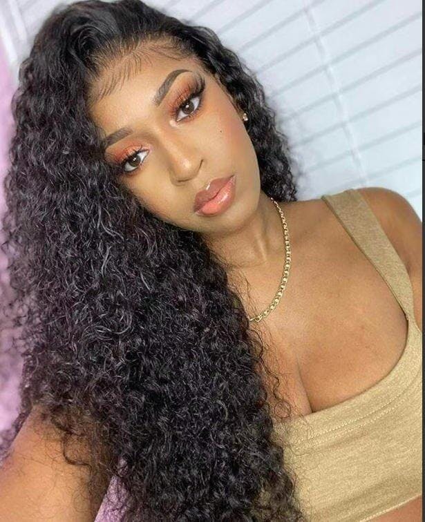 Water Wave Full 13x4 Frontal transparent Lace Wig #1B Natural Black Free Shipping