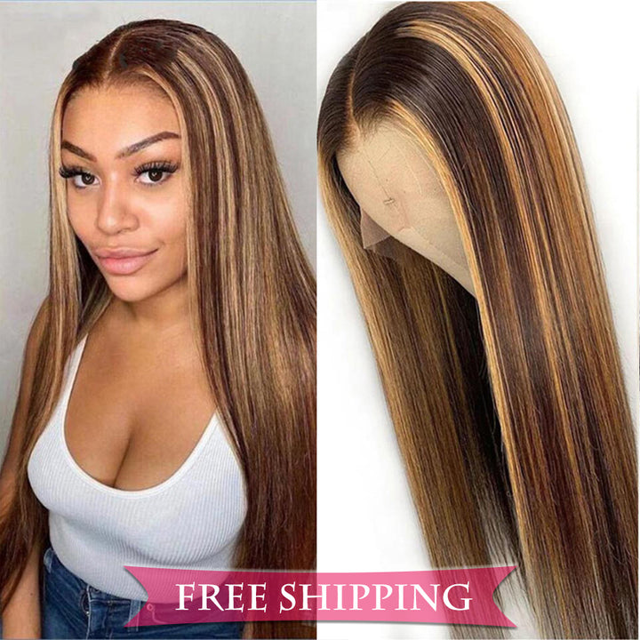 #4/27 Highlight Straight Full 13x4 Frontal transparent Lace Wig Color Wig Free Shipping
