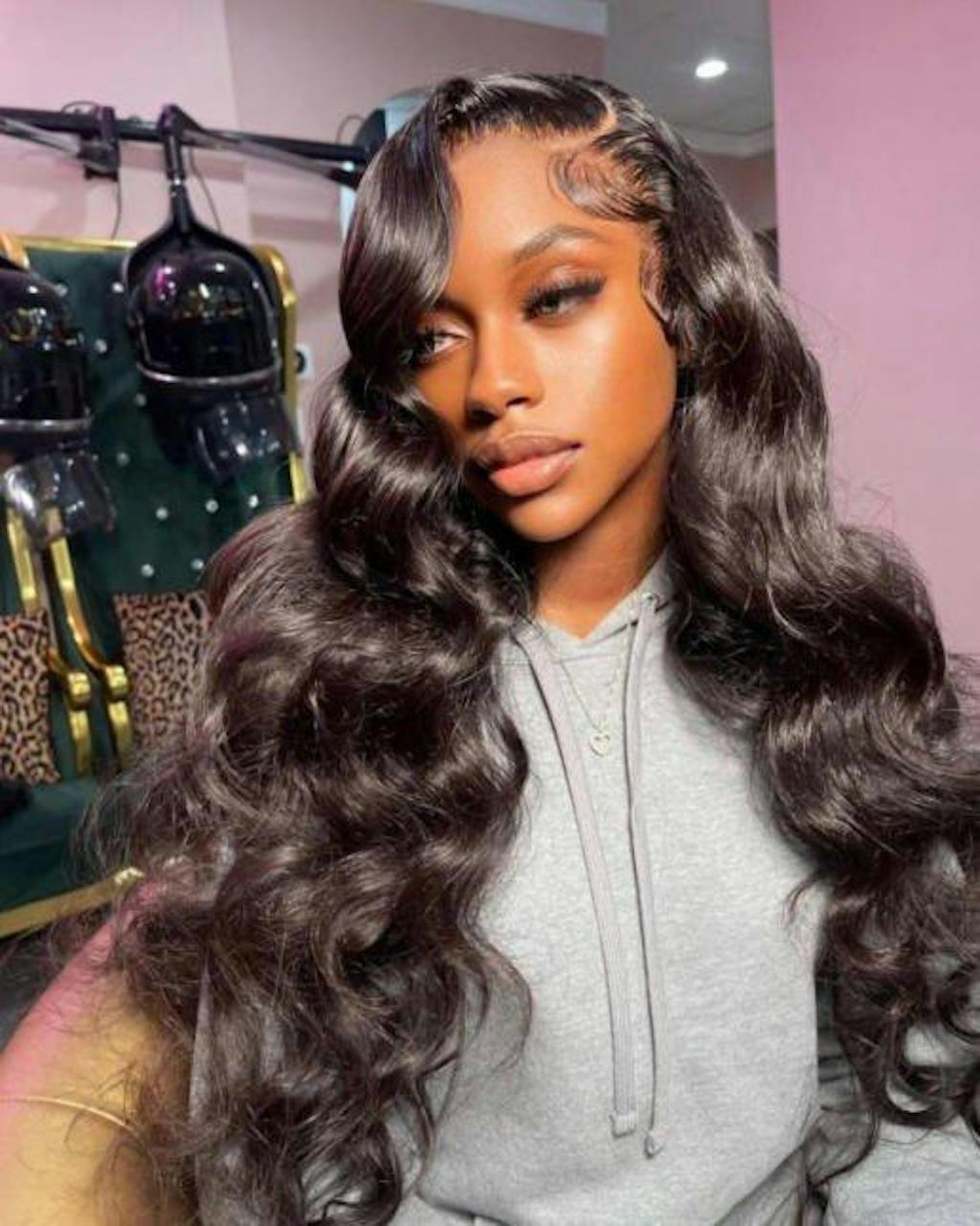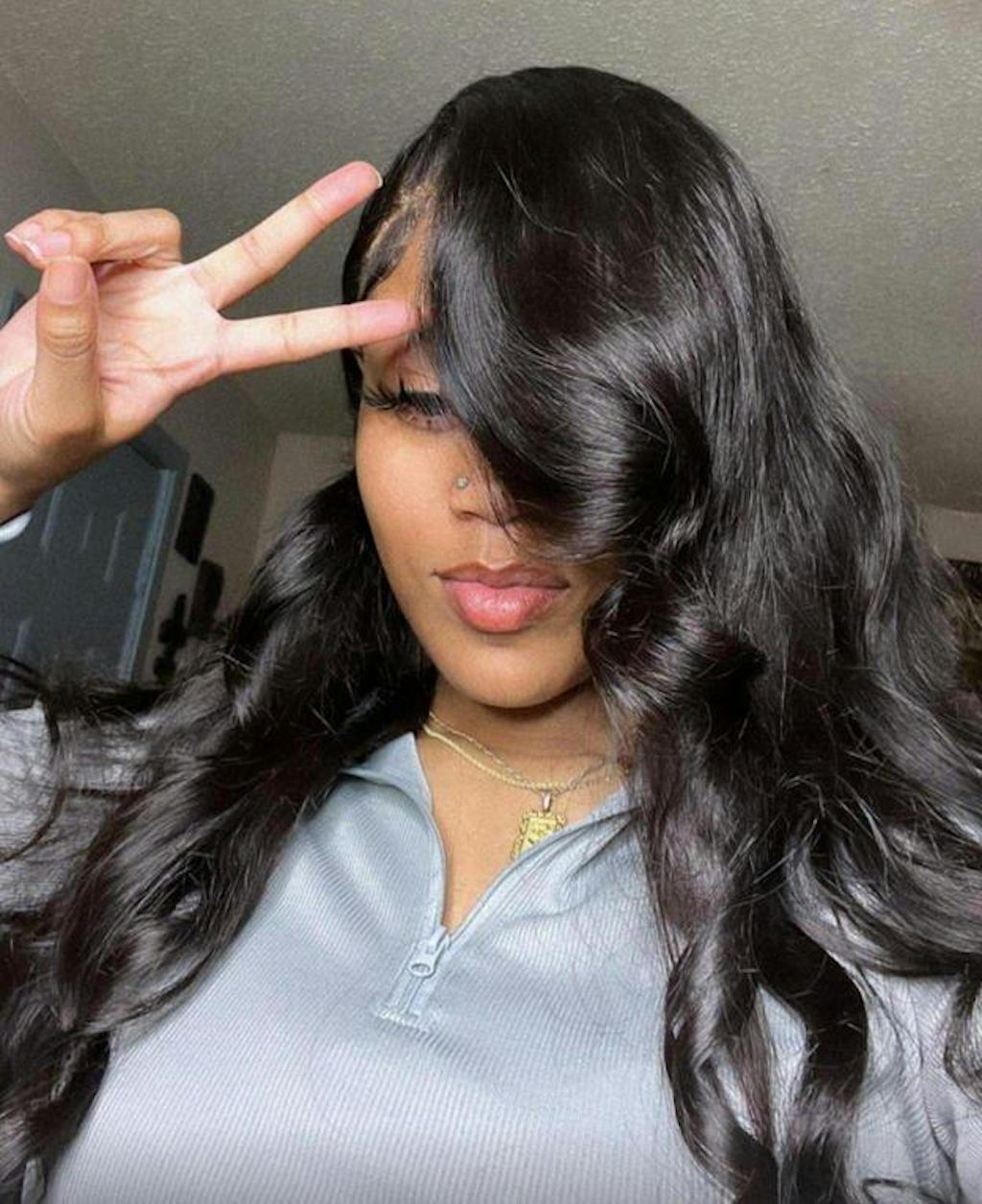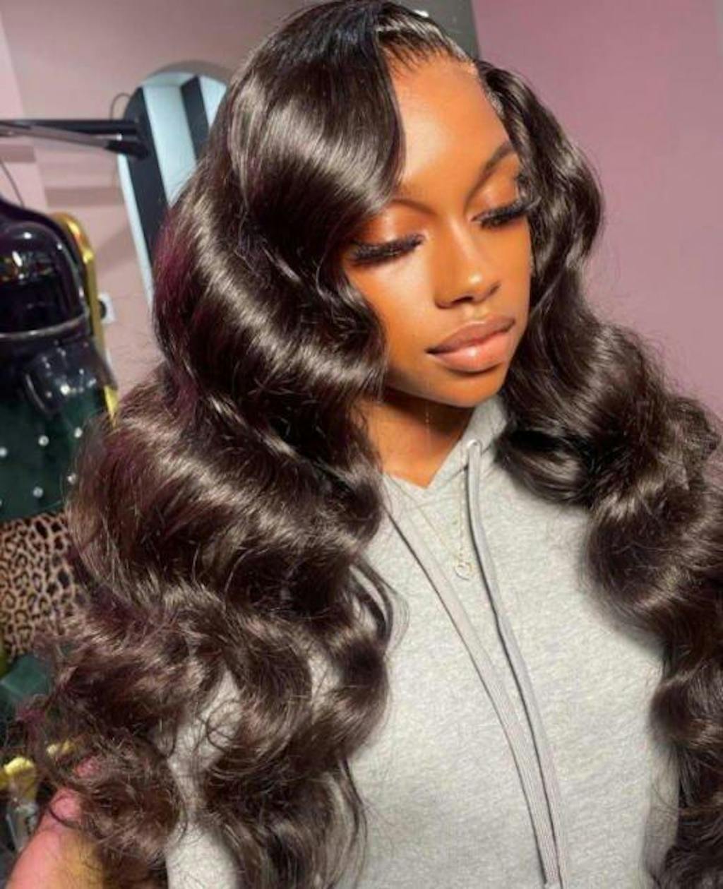 Body Wave Full 13x4 Frontal HD Lace Wig #1B Natural Black Free Shipping