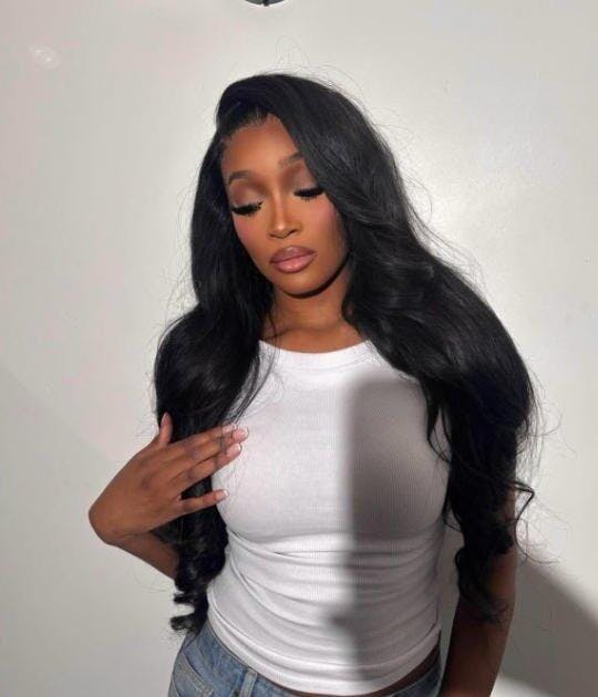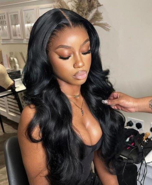 Body Wave Full 13x6 Frontal transparent Lace Wig #1B Natural Black Free Shipping