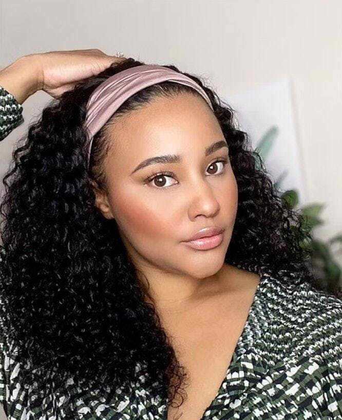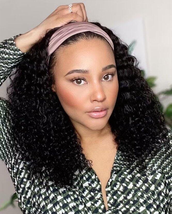 Kinky Curly #1B Natural Black Flexible 180% Density Beginner Friendly Headband Wig Free Shipping