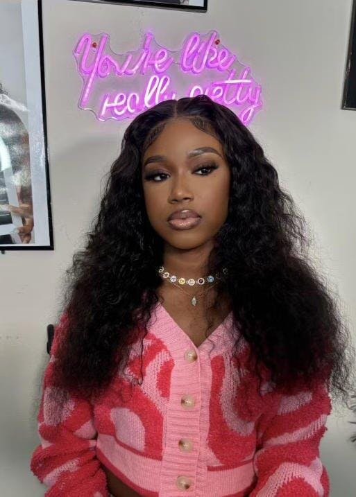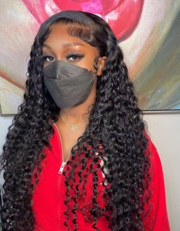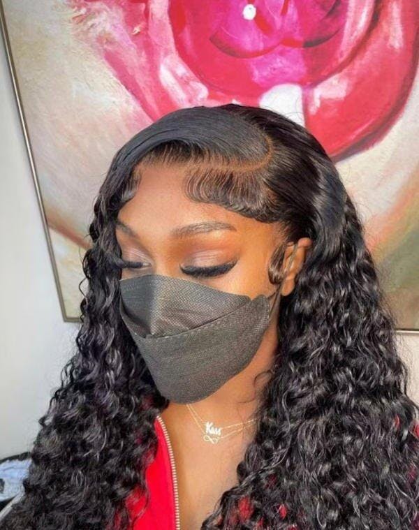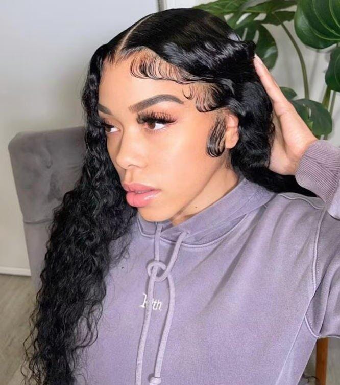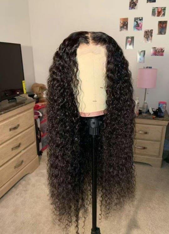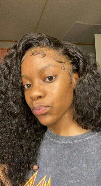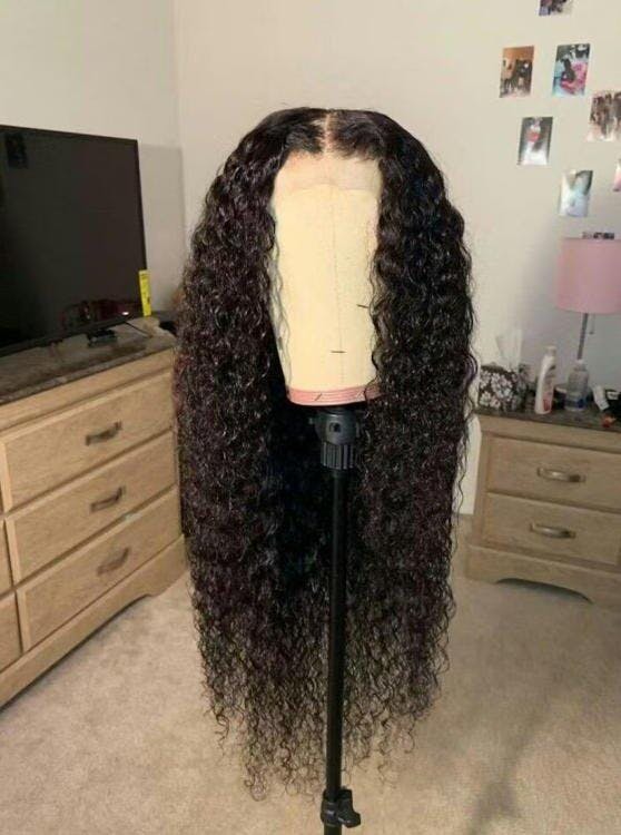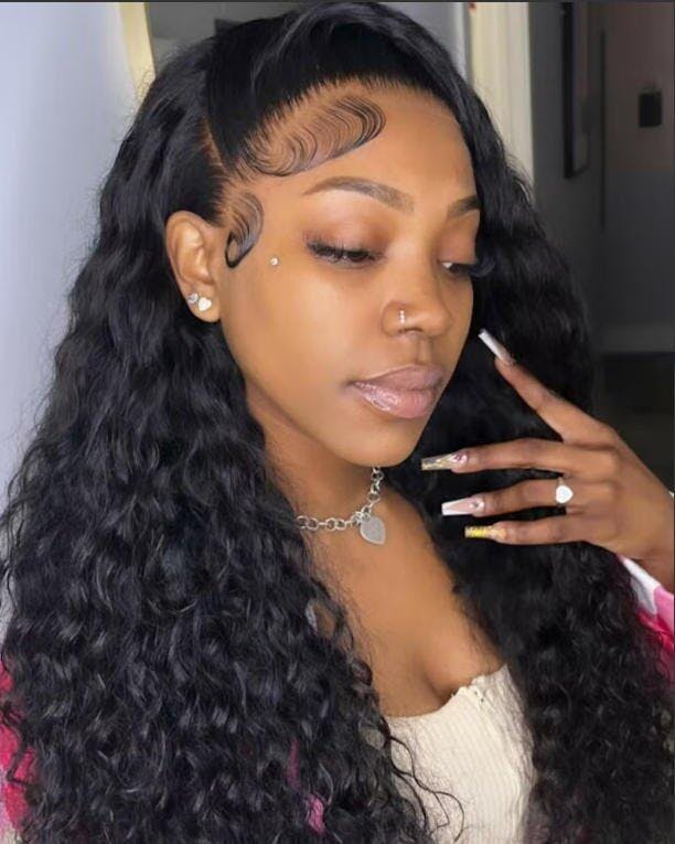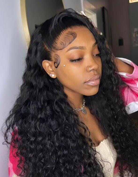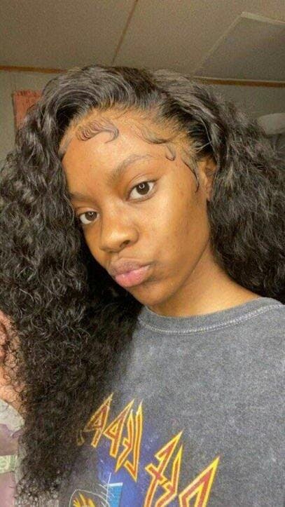 Water Wave Full 13x4 Frontal transparent Lace Wig #1B Natural Black