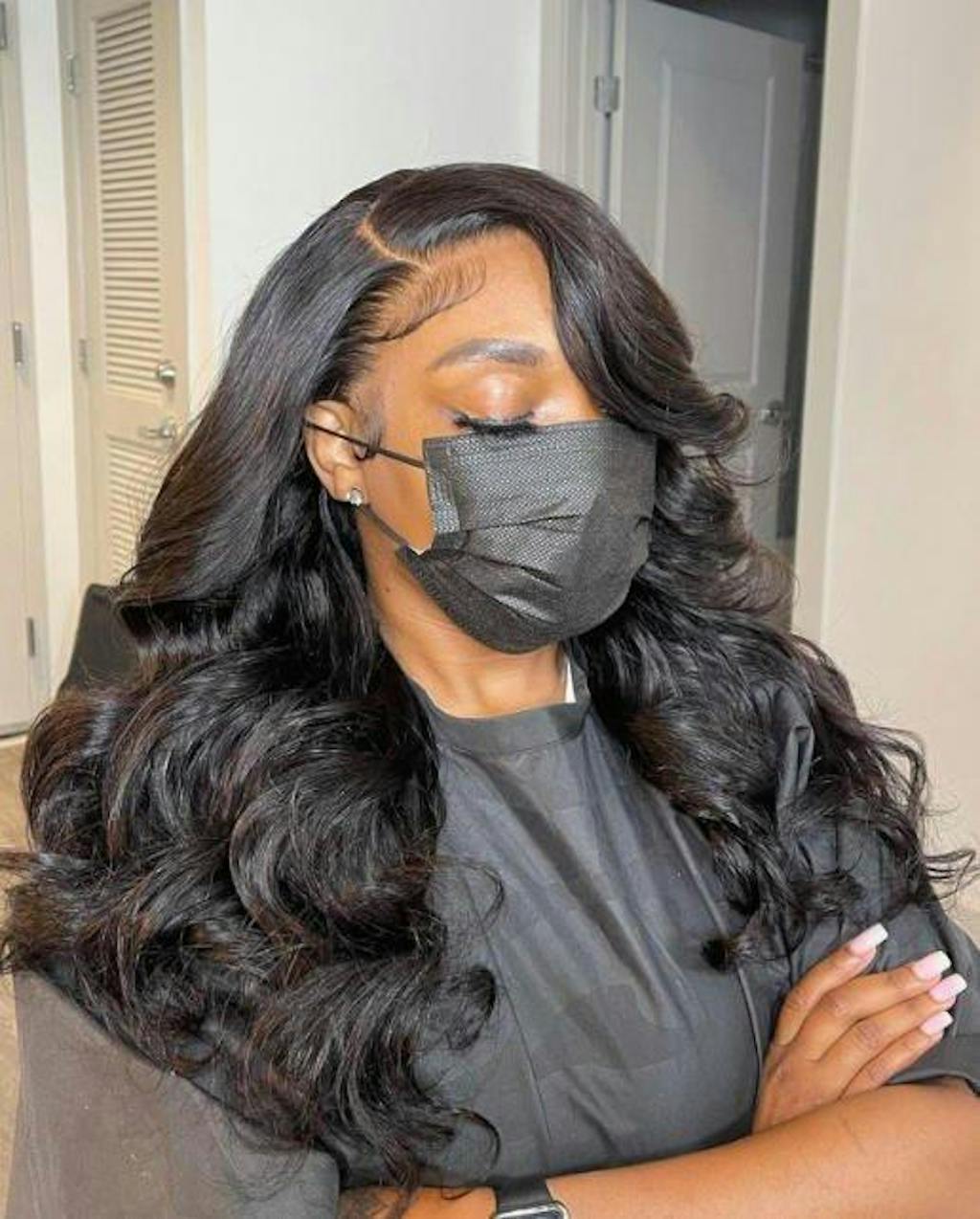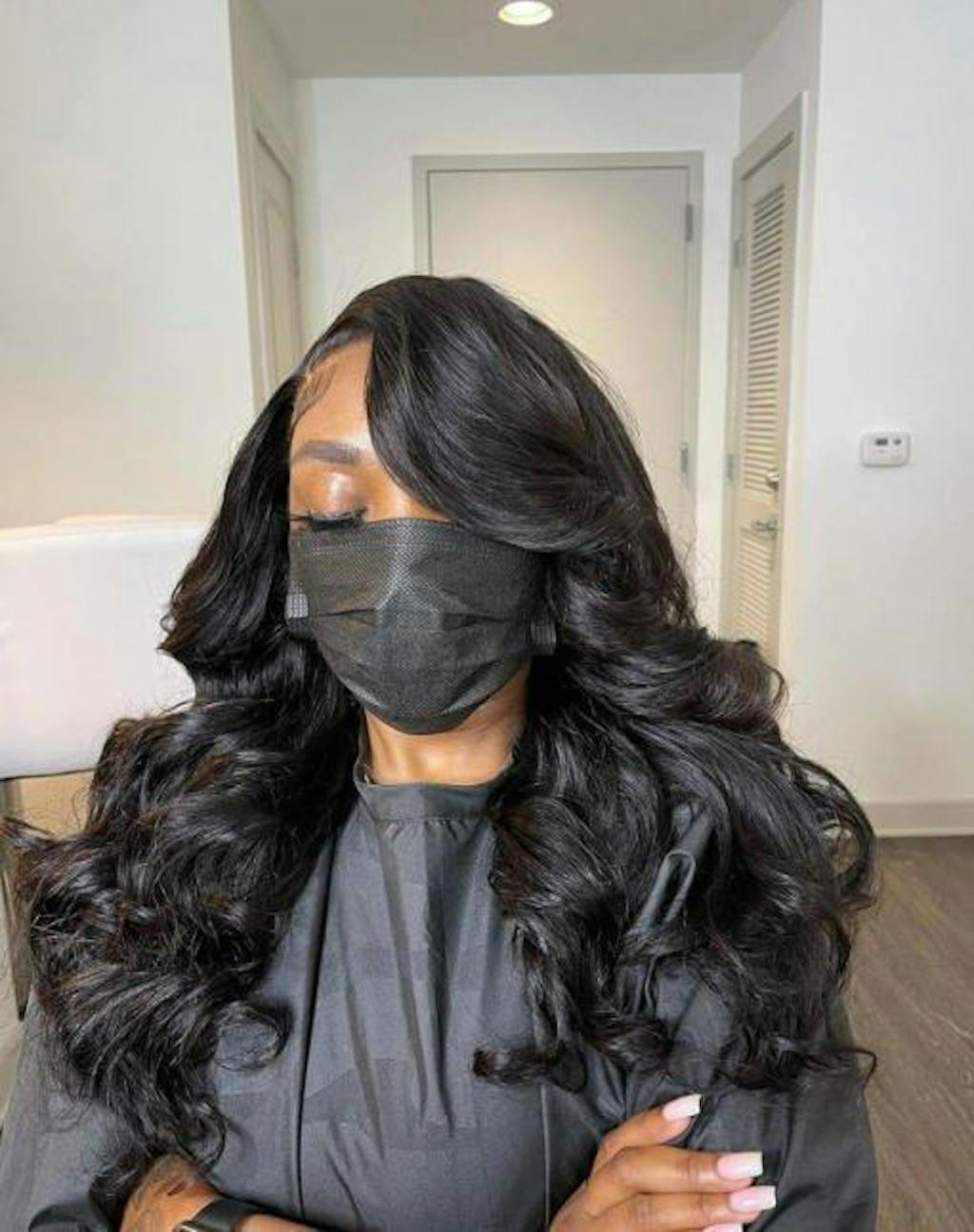 Body Wave Full 13x6 Frontal transparent Lace Wig #1B Natural Black