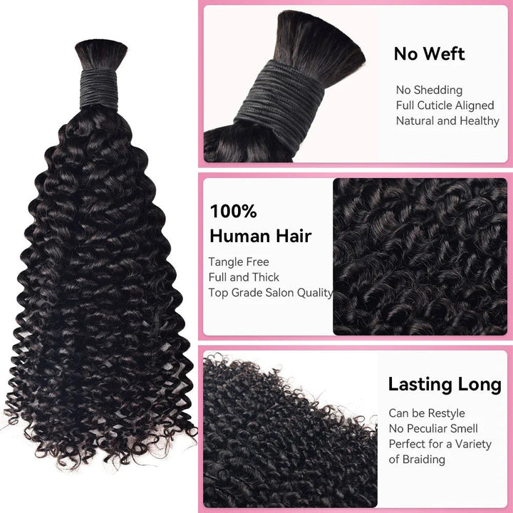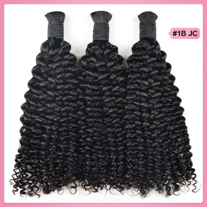 Jerry Curly Bulk Human Hair Natural Black #1B Braiding Hair (100 Grams)