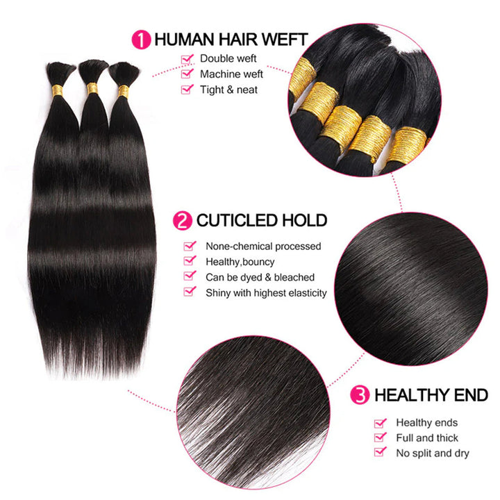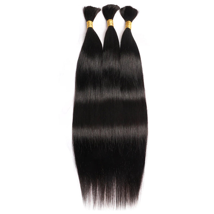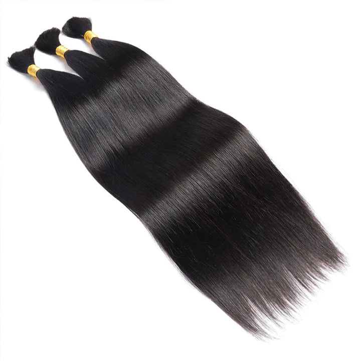 Straight Bulk Human Hair Natural Black #1B Braiding Hair (100 Grams)